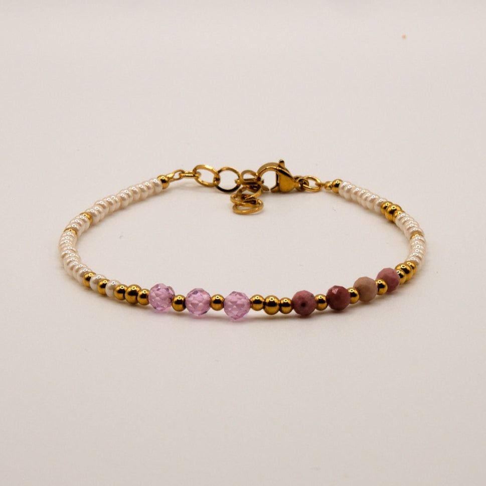 Luna Bracelet - Rhodonite - Zircon - Stainless Steel - White/Pink