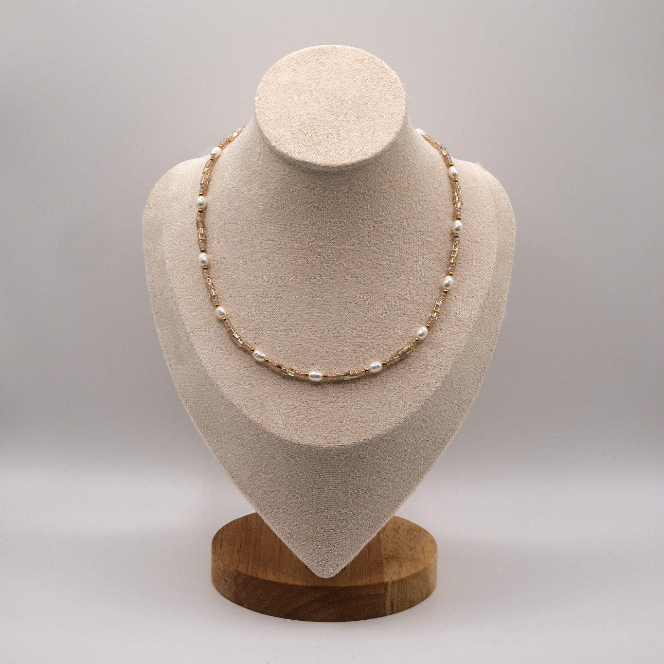 Halskette Kira - Süßwasserpelen - Edelstahl - Beige/Gold