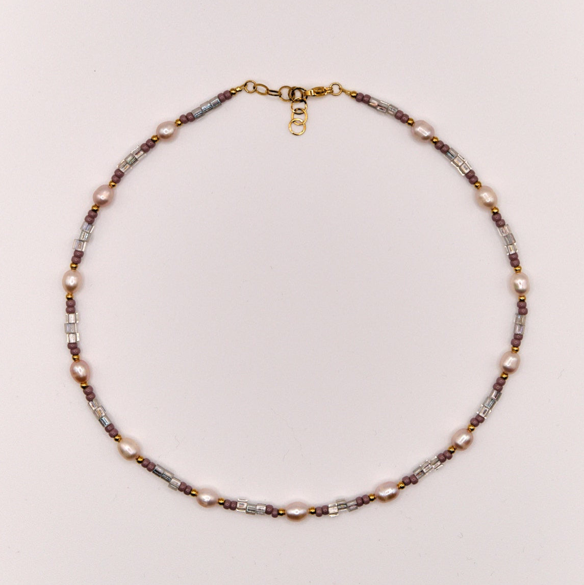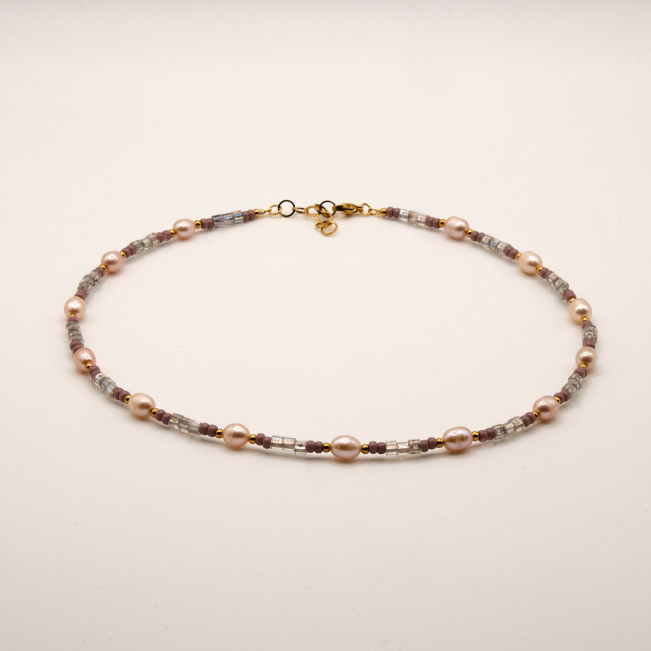 Trage diese einzigartige Halskette mit lila Süßwasserpelen und lila Glasperlen für einen verspielten Look. Die Lia Halskette ist der perfekte Begleiter für jeden Tag und verleiht jedem Outfit einen Hauch von Eleganz und Farbe.