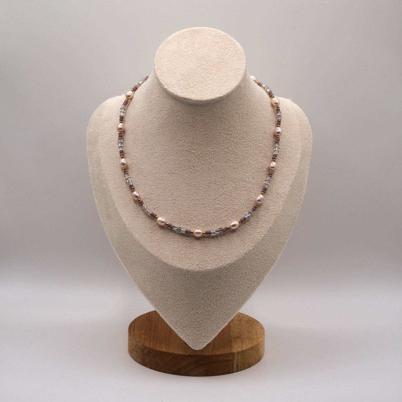 Halskette Lia - Süßwasserpelen - Edelstahl - Lila/Gold